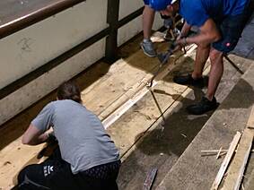Wie heißt es so schön, nach der Saison ist vor der Saison! Aus diesem Grund haben auch unmittelbar nach dem letzten öffentlichen Lauf, den letzten Trainings der Eishockey-Mannschaften die in der Spendenaktion angekündigten Arbeiten begonnen.