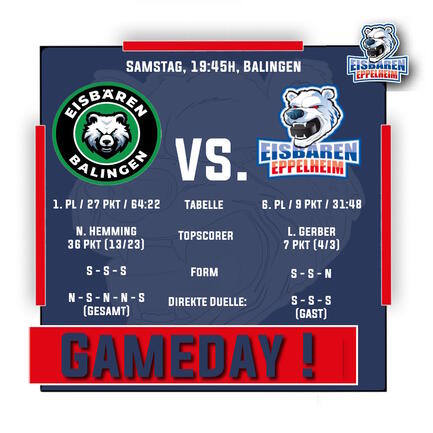 Mit Rückenwind reisen unsere Eisbären am Samstag zu ihren Namensvettern nach Balingen. Nicht nur die Anreise ist die Weiteste der Saison, auch die Aufgabe könnte kaum schwerer sein. Die Gastgeber sind in dieser Saison Top-Favorit, stellen sowohl die beste Offensive als auch beste Defensive und demonstrierten im Hinspiel ihre Dominanz beim klaren 9:2-Erfolg im Icehouse. Erst einmal musste sich Balingen in dieser Saison geschlagen geben.